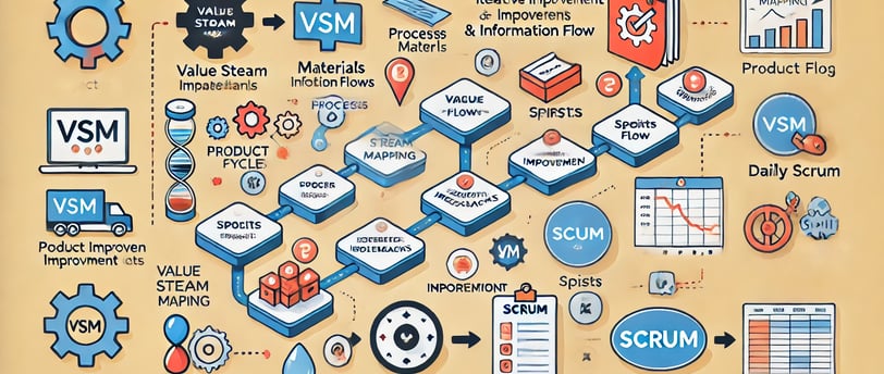 Innovation in project management is crucial for maintaining a competitive edge and improving efficiency. Combining methodologies like Value Stream Mapping (VSM) and Scrum can lead to significant time reductions and streamlined processes. This blog will explore how VSM and Scrum can be utilized to identify innovation and reduce time in project management.